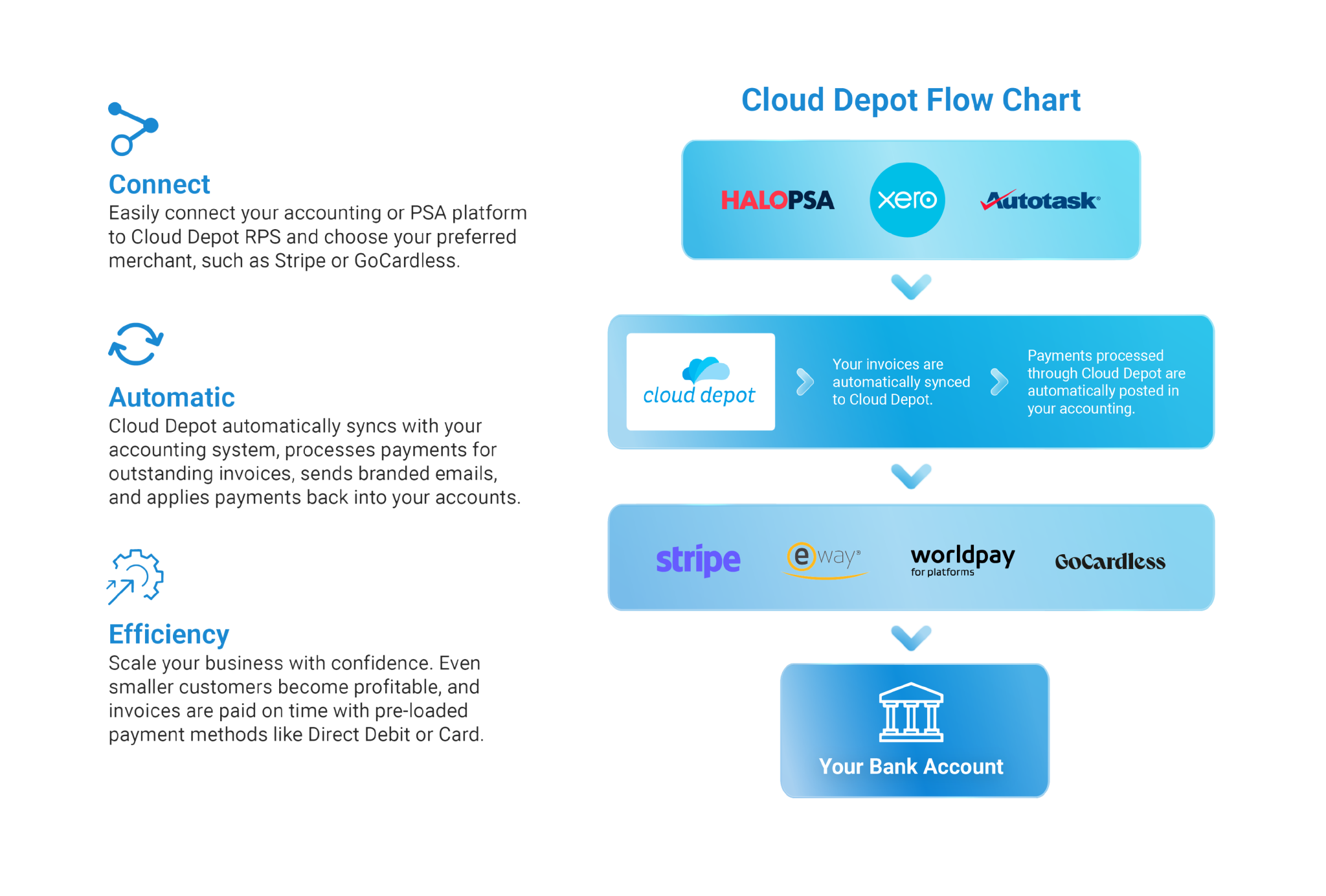 Automated getting paid has never been so easy, customers can download invoices, see what’s outstanding, pay invoices and turn on automatic payments. All on your own branded payment portal.